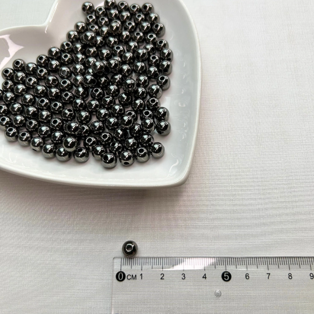 Bola de ABS com furo passante, e banho metalizado na cor grafite.